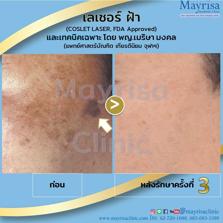 การเลเซอร์รักษากระลึก การเลเซอร์ไม่ควรเกิดสะเก็ด และต้องยิงซ้ำ เพื่อให้เม็ดสี ค่อยๆถูกกำจัดออกไปทีละชั้น